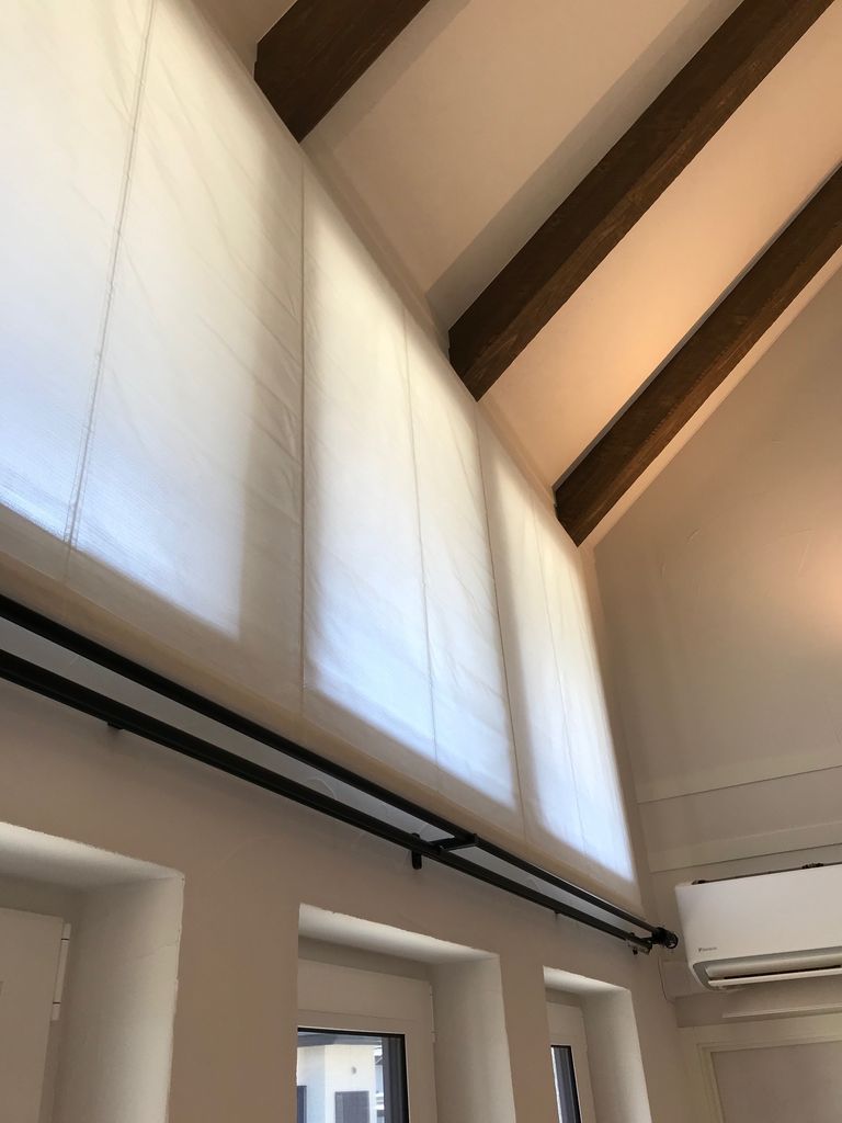 室内の最後の工程で、カーテンレールとシェードが付きました。