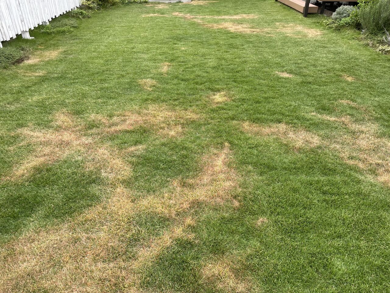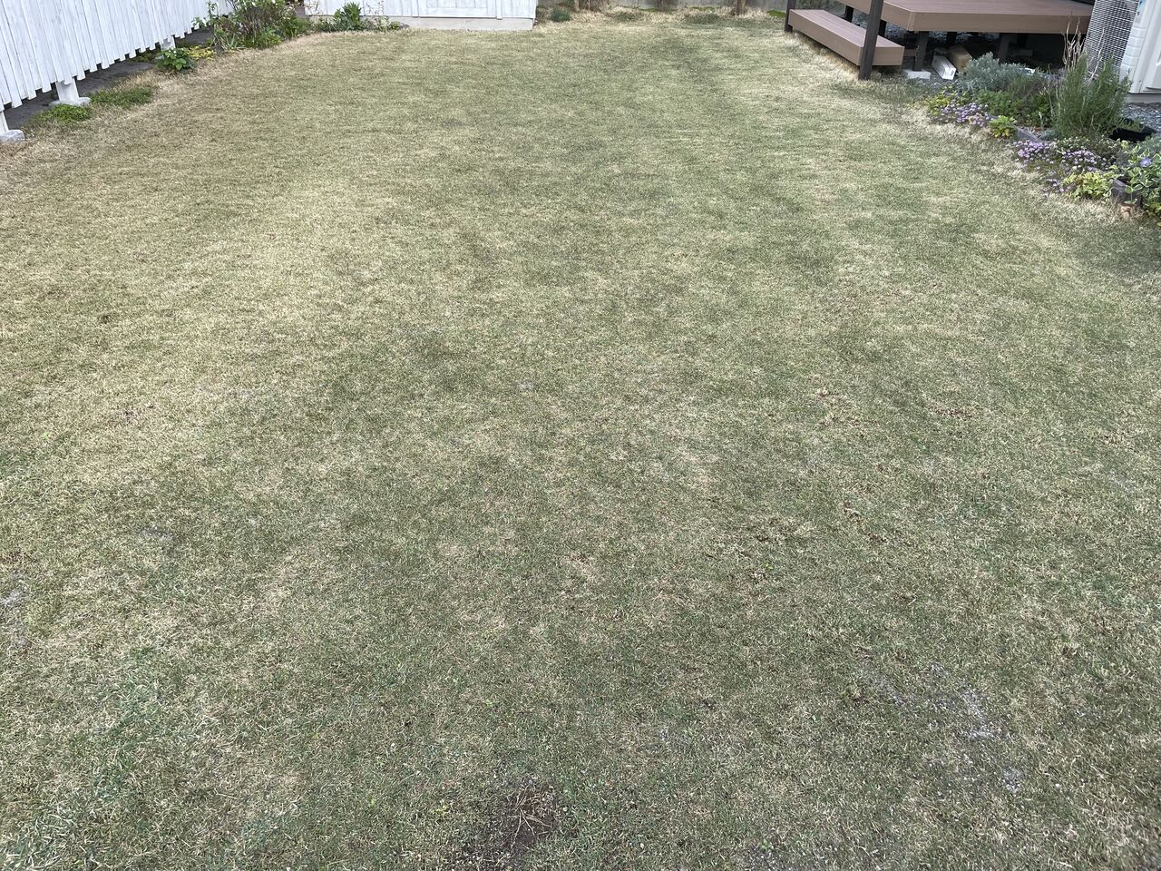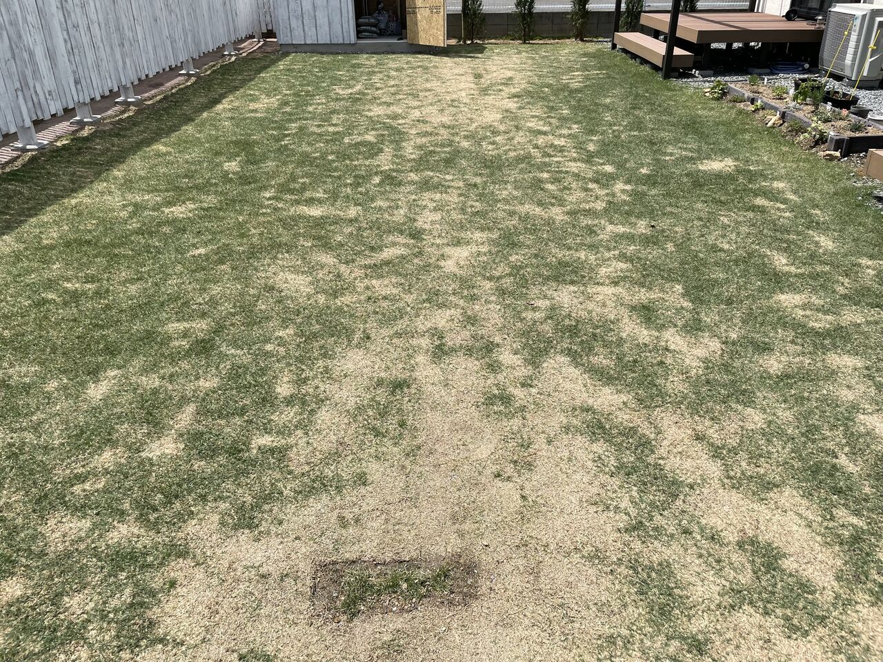 2021年6月。前年に芝張りした時よりも葉の色がキレイに出てないみたいです。